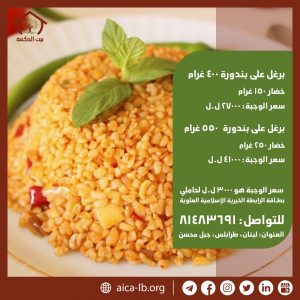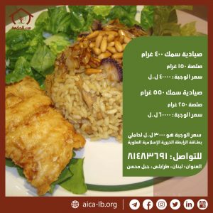 ملاحظة: يذهب ريع هذه الوجبات لدعم الأسر الأكثر فقراً في منطقة جبل محسن عبر بطاقة الرابطة الخيرية الإسلامية العلوية التي تخول حامليها الحصول على الوجبة بسعر ٣،٠٠٠ ل.ل. فقط لا غير