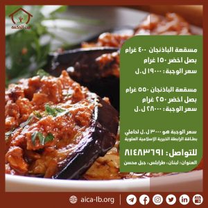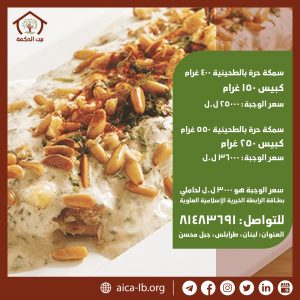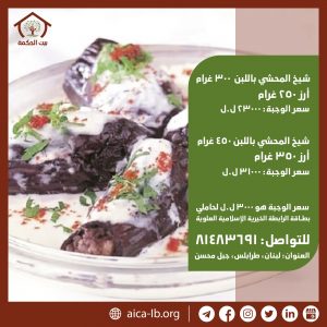 ملاحظة: يذهب ريع هذه الوجبات لدعم الأسر الأكثر فقراً في منطقة جبل محسن عبر بطاقة الرابطة الخيرية الإسلامية العلوية التي تخول حامليها الحصول على الوجبة بسعر ٣،٠٠٠ ل.ل. فقط لا غير
